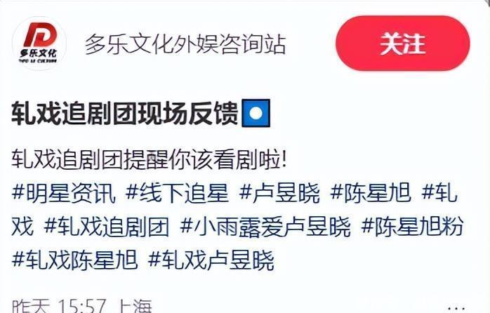就在1月12号,《轧戏》剧组在北京搞了个追剧团行径,蓝本是念念让男女主陈星旭和卢昱晓炒炒CP,恶果没念念到被男二代旭抢了系数风头。