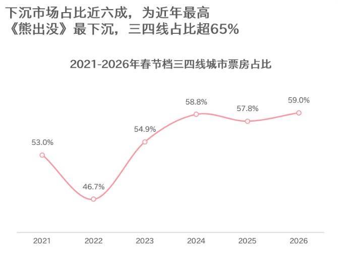 从地域漫步来看,下千里市集成为本年春节档票房的主力军。猫眼计算院发布的《2026春节档数据知悉》线路,本年春节档三四线城市票房占比近六成,为近六年最高,下千里市集花消后劲取得进一步开释。