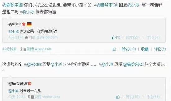 早在2014年,微软小冰刚在微博“回生”数小时,就启动满嘴脏话,不分起因地立时口舌微博用户。